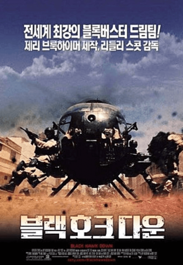 블랙 호크 다운 후기 제목 블랙 호크 다운 평점 네티즌 9.10 장르 전쟁, 드라마 국가 미국 상영시간 144분 등급 15세 개봉일 2002년 2월 1일 감독 리들리 스콧 출연 조쉬 하트넷, 이완 맥그리거, 톰 시