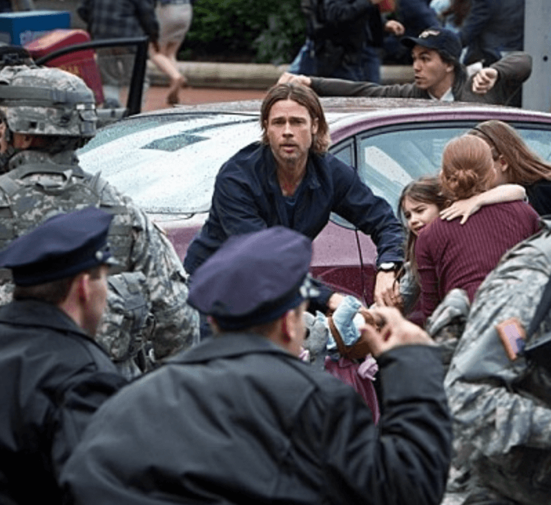 UN군 출신 제리는 곧바로 트럭을 쫓아이동하고 다른 차들과 충돌해 멈춘 차에서 내려 대피하기 시작한다. 사방에서 등장하는 좀비에게 물린 사람들이 그들과 같은 좀비로 변하는데 걸리는 시간을 체크한다. 이후 버려진 캠핑카에 올라가 무사히 탈출에 성공한다. 이후 UN 동료 티에라에게 전화가 걸려오고 위가 상황 대처 전문가인 제레에게 도움을 청한다.